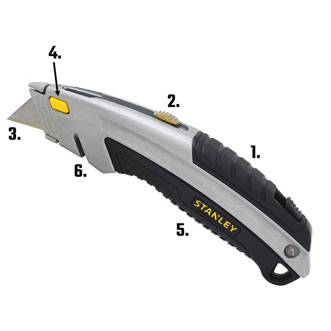 - Some utility knives have a spring loaded button to extend the blade; once your finger is off the button the blade will retract – these are considered safety utility knives