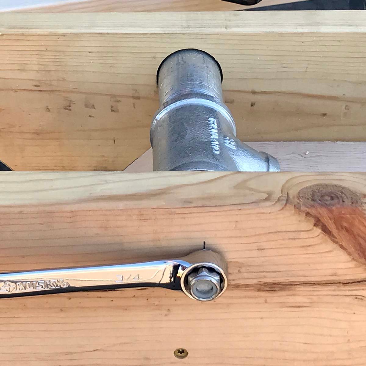 - Install the two tee assemblies in the two-inch holes in the opposite orientation of each other.