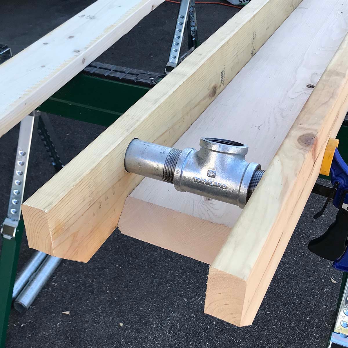 - Screw the 4-1/4-in. and 1-3/4-in. pieces into the two ends of the tee.