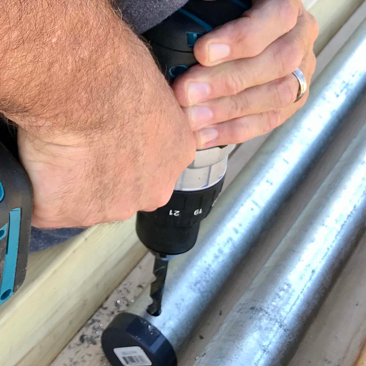 - Drill a 3/8-in. hole one inch from the end of each pipe.