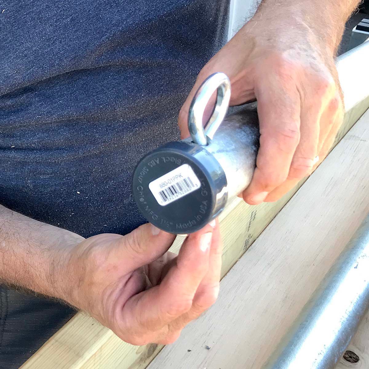 - Insert an eye bolt into the 3/8-in. hole. Secure it with a lock washer and nut.