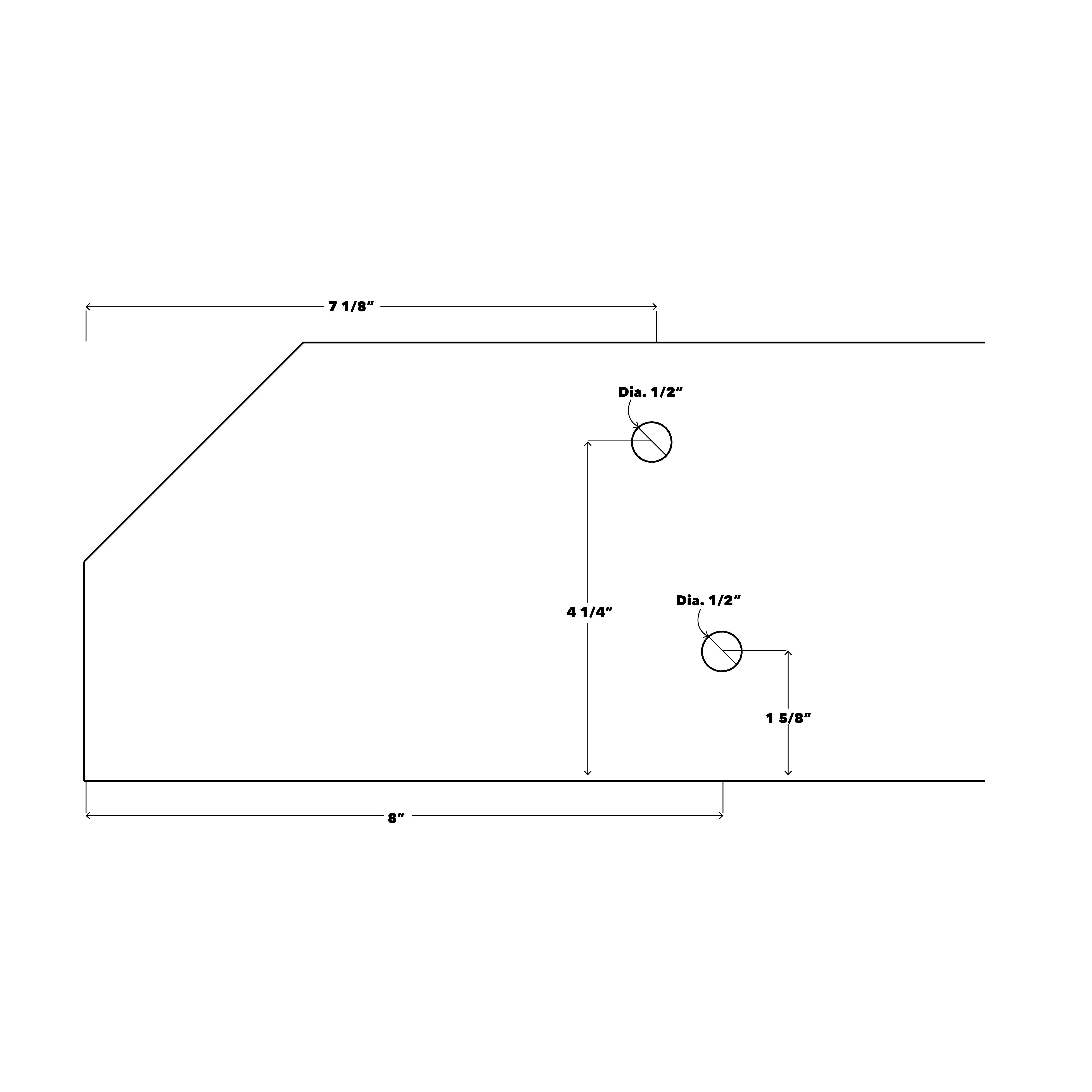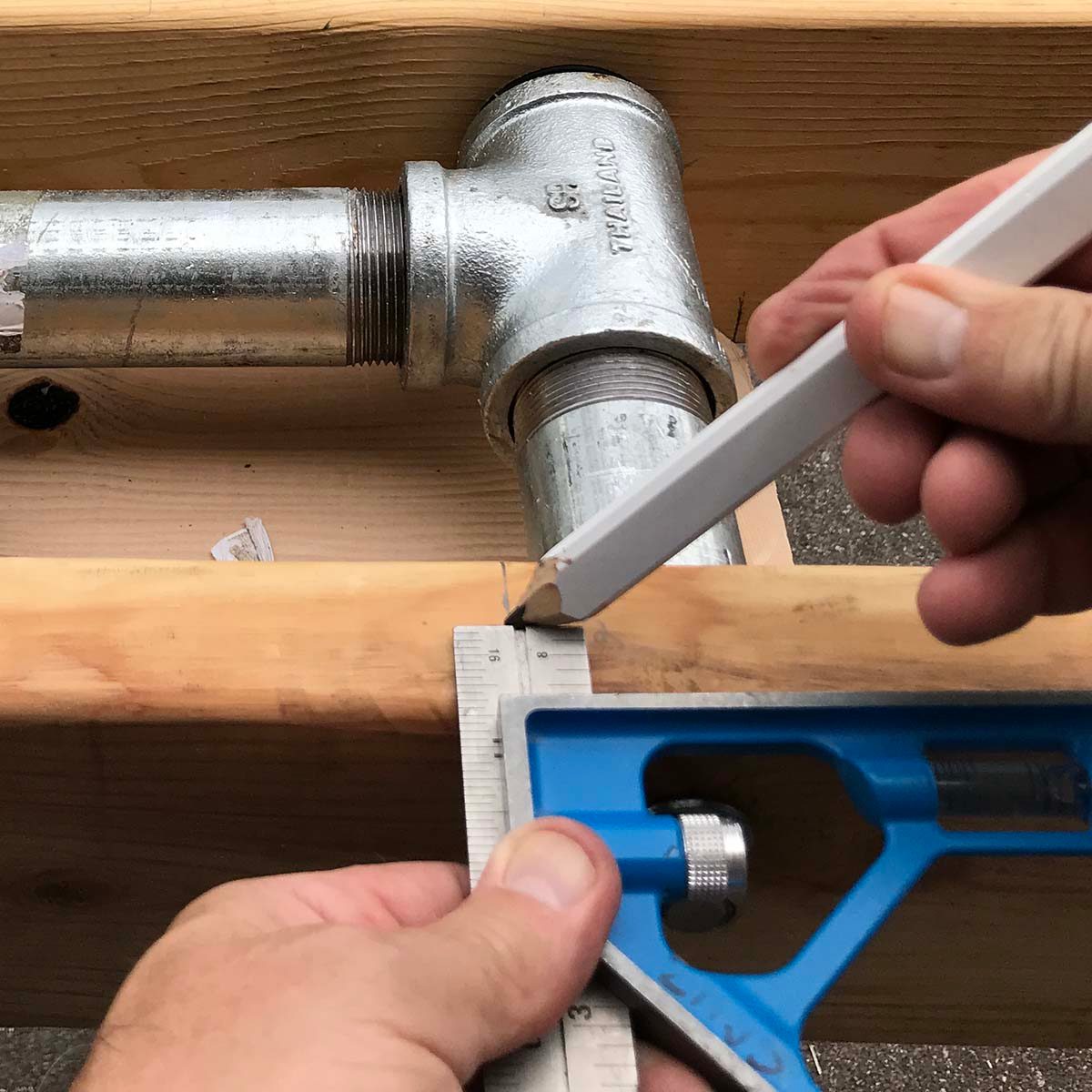 - Measuring from the end, make a mark at 7-1/8-in., then cross the mark at 4-1/4-in. from the bottom.