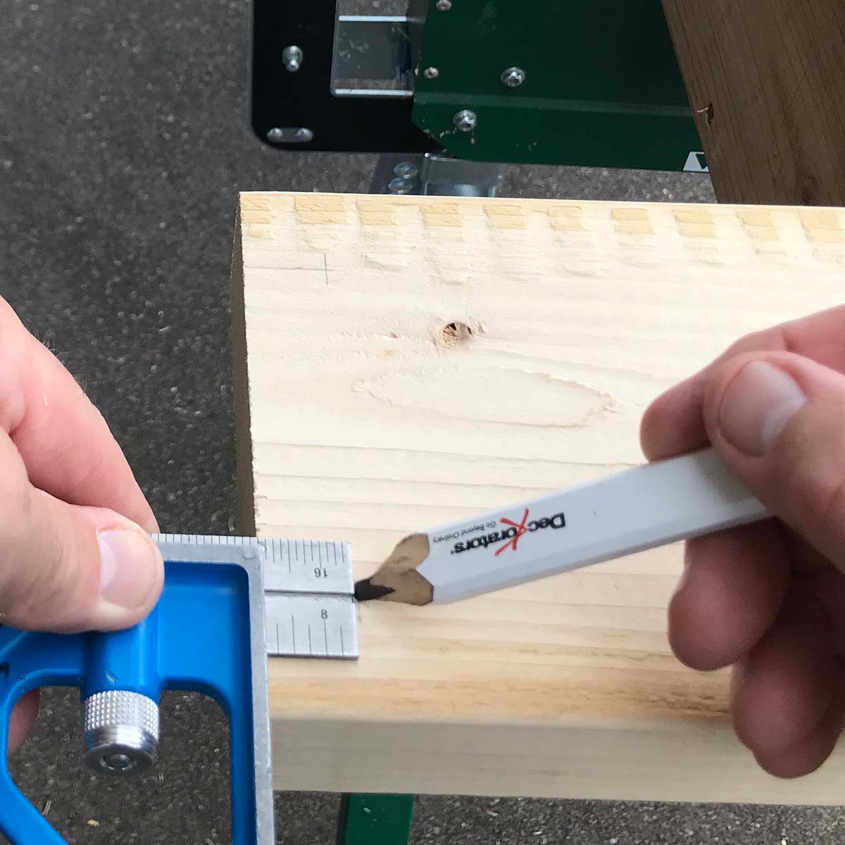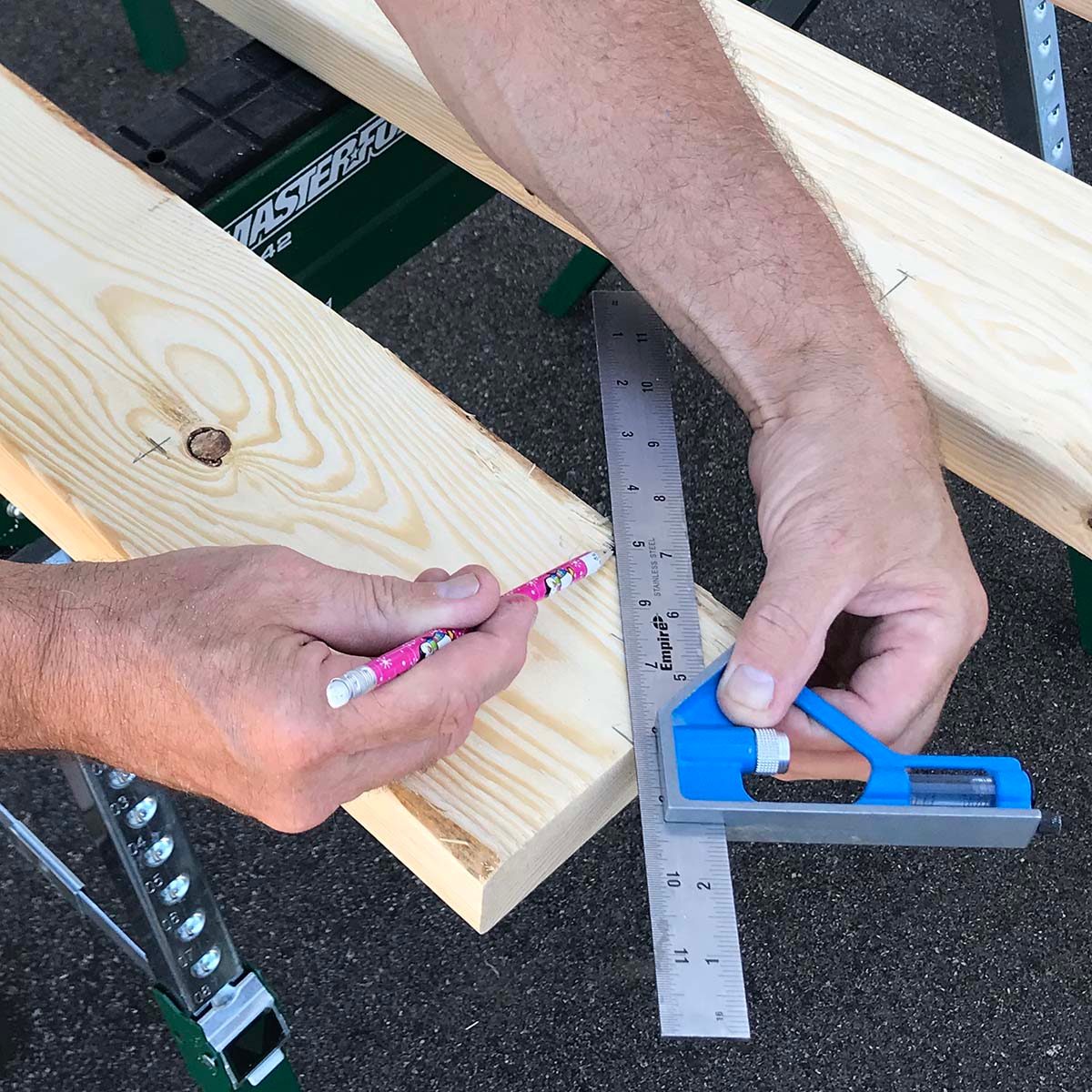 - Set your adjustable square at 3/4-in. and draw lines on the face at one end of each of the 30-inch boards.