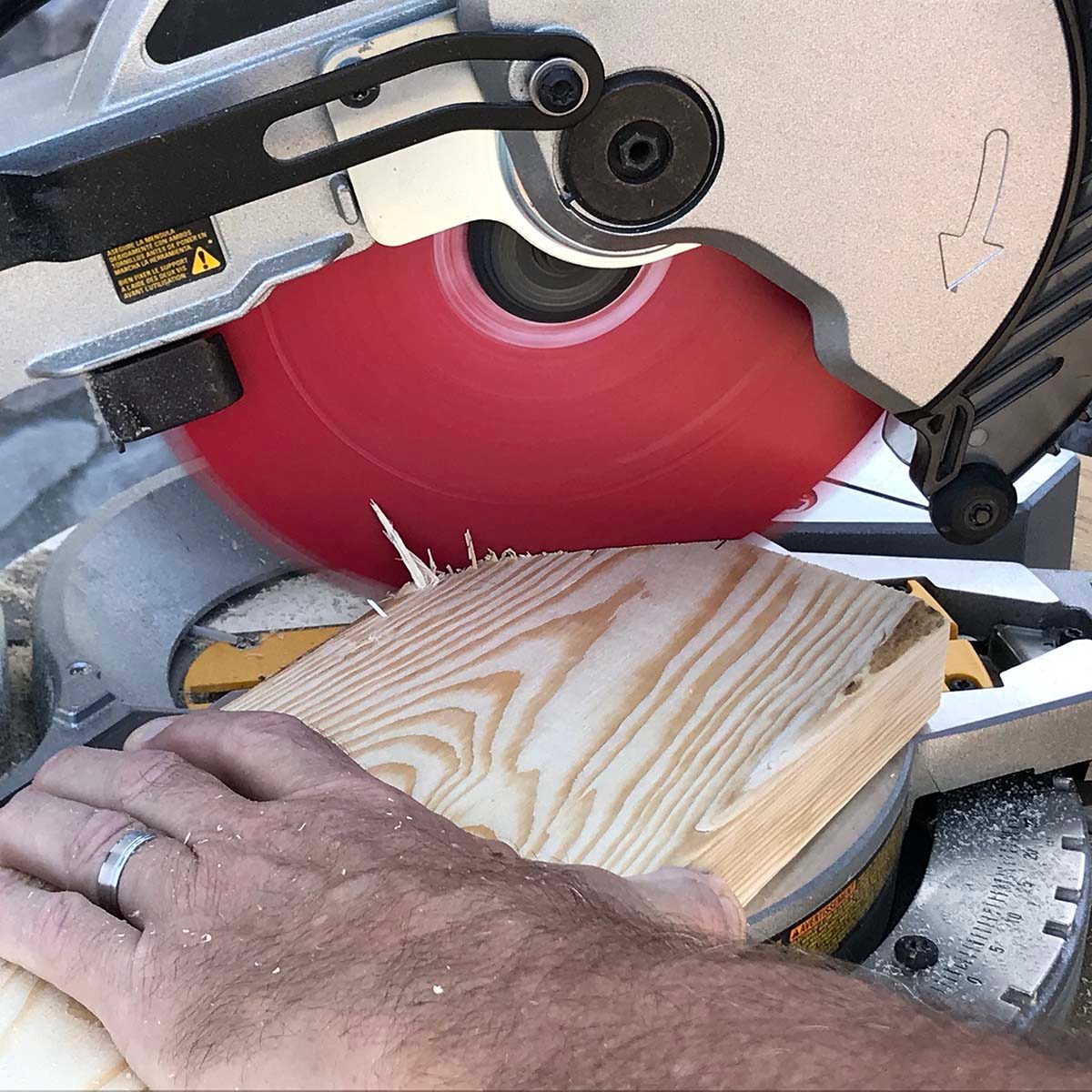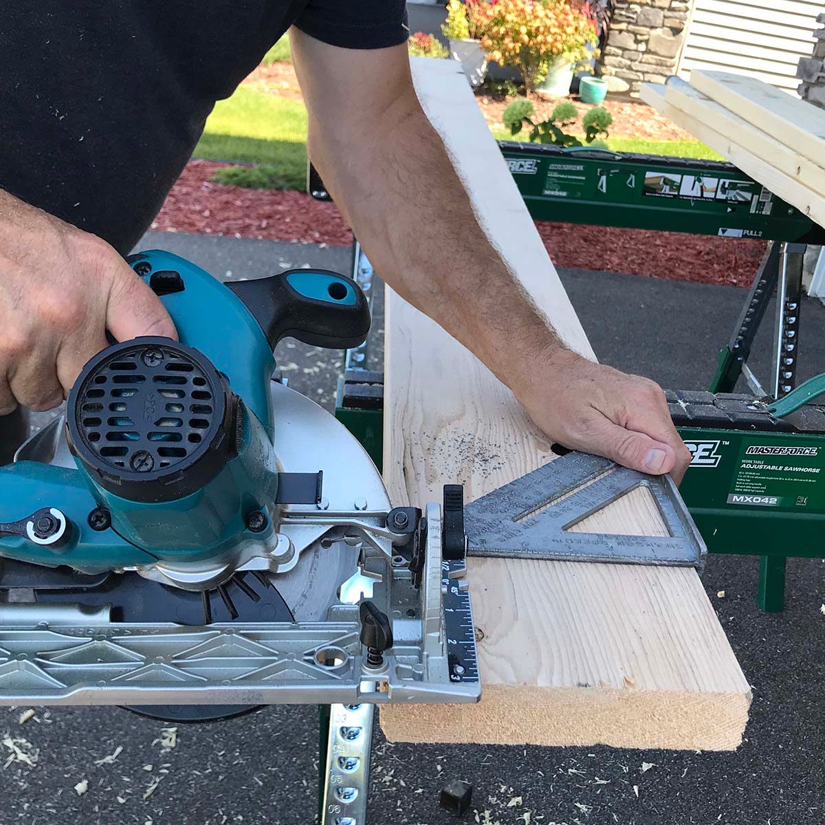 - Cut a 45 degree angle on the end of the 2×8, using a circular saw.