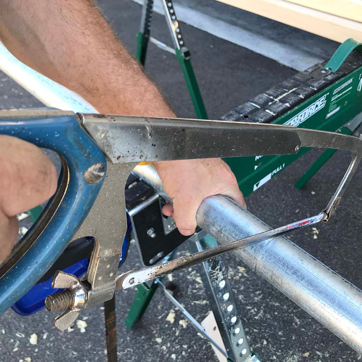 - Cut the 10 foot pipe in half at five feet using a reciprocating saw or hacksaw. A heavy-duty pipe cutter works well, also.