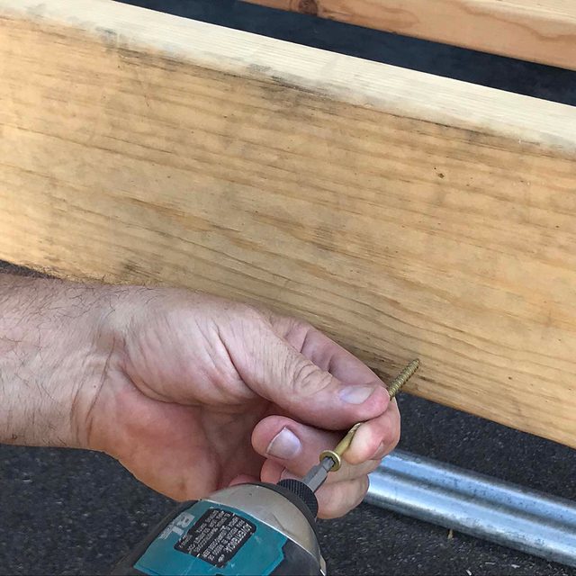 - Attach the rail to the top using #10 x 3-1/2-in. deck screws every 12 inches.
