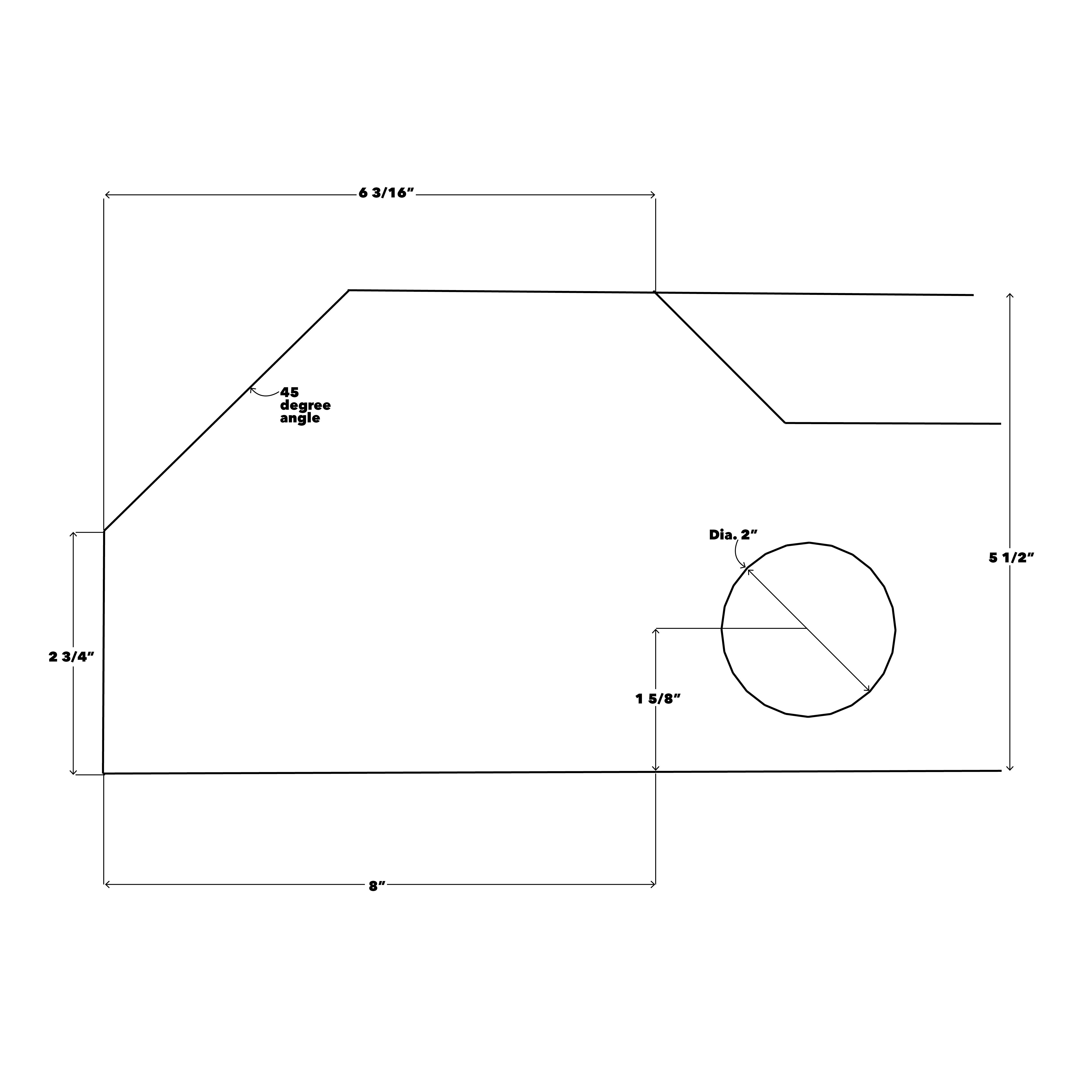 - Make another mark on the end of the board 2-3/4-in. from the bottom, and draw a line at a 45 degree angle.