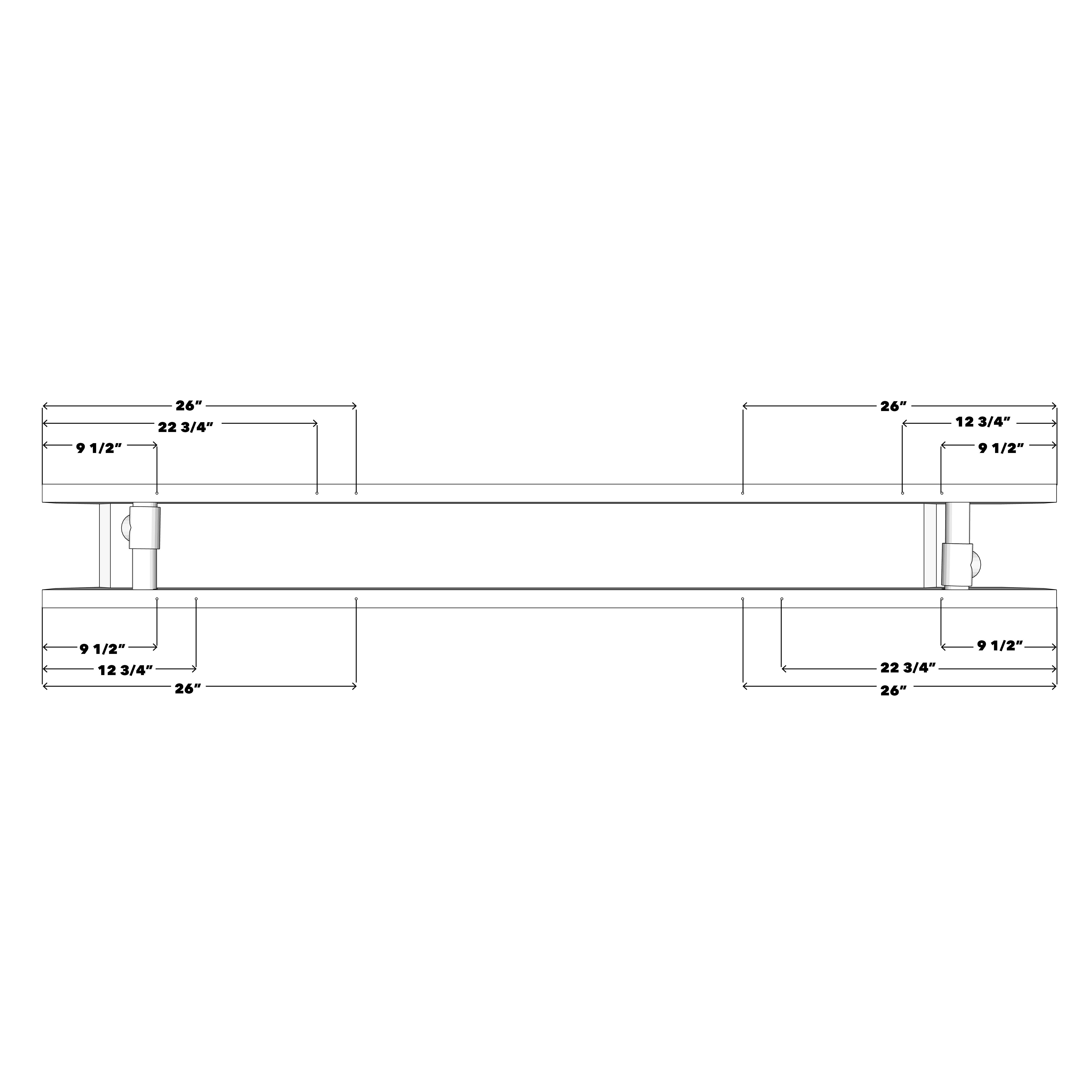 - On the other rail farthest from you, measure from the left and make marks at 9-1/2, 22-3/4 and 26 inches.