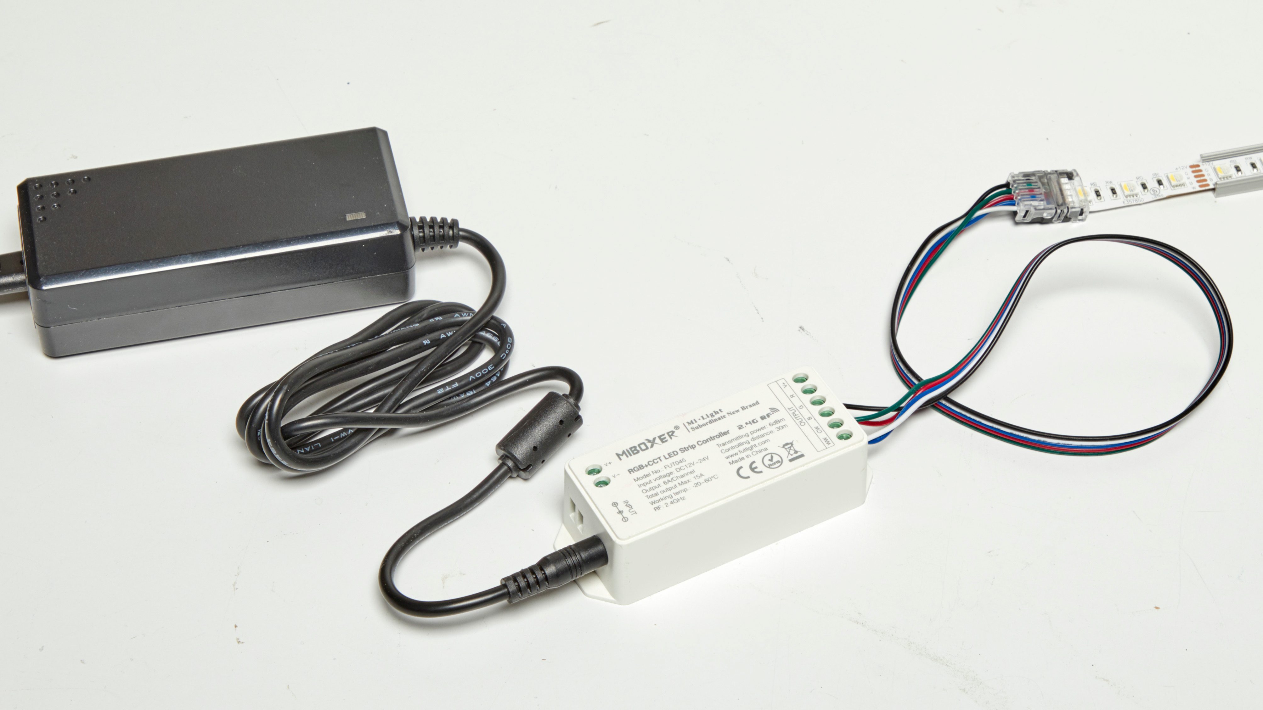If you are adding LED strip lights to a 12-volt system like a boat, trailer or car, you will connect the positive and negative 12 volt leads to the controller. If adding them to your home, plug a transformer into the controller, then the transformer into an outlet.