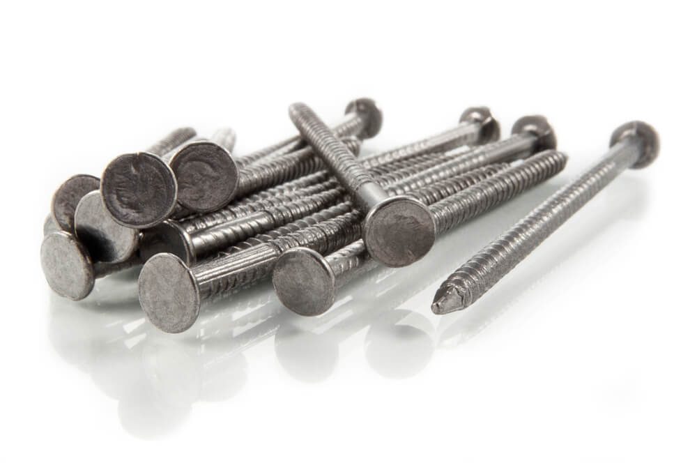 Perhaps the most commonly-known ring shank nails are those used to secure drywall—you want those nails to stay put since any “pop” will create a pimple on the wall surface. Nails used for building pole barns or installing siding, metal roofing and deck boards—scenarios where lumber is more likely to shrink and expand due to extreme temperature and moisture changes—are also often of the ring shank variety.