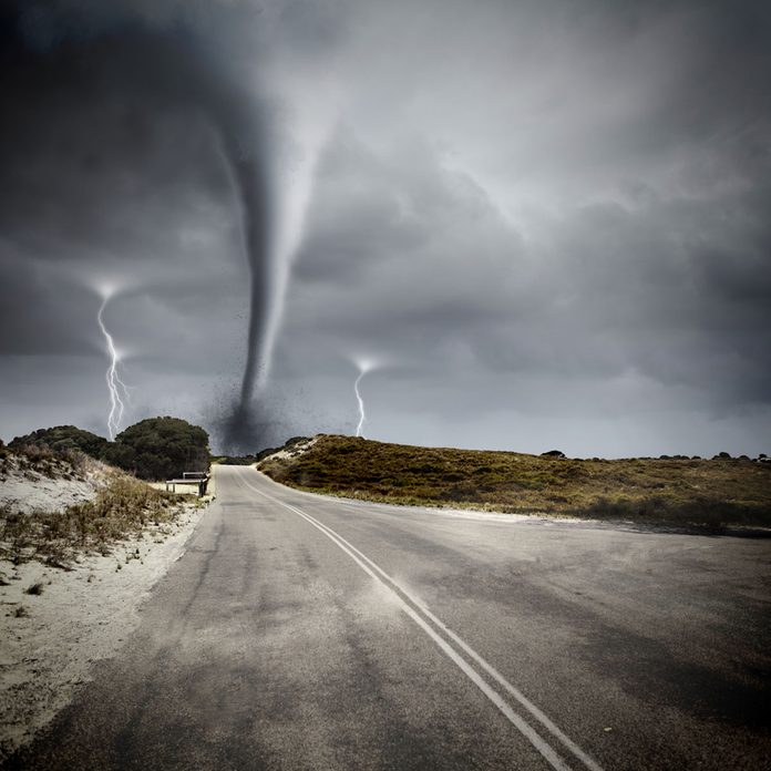 If you’re in a vehicle, and the traffic is light, you may be able to drive out of the path of the tornado by driving at right angles to it. Otherwise, park your car quickly and safely, off the road. However tempting, don’t park under bridges,which can cause a traffic danger while giving you little protection.