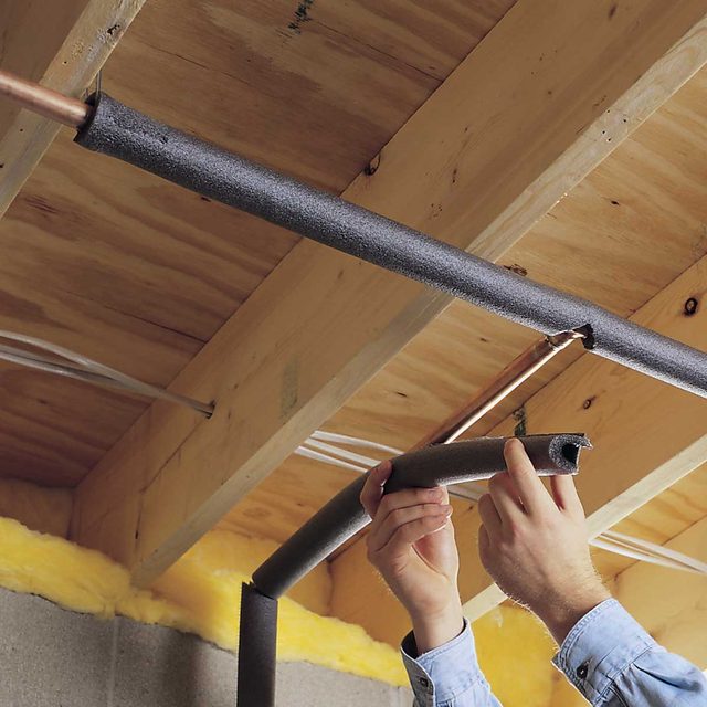 Insulating water pipes reduces heat loss and can raise your water temperature two to four degrees F. That helps the water from your tap or shower heat faster so you don’t need to run it as long, saving water. Water pipe insulation is cheap and easy to install in most places. Simply slide the insulation around the existing pipe and you’re all set.