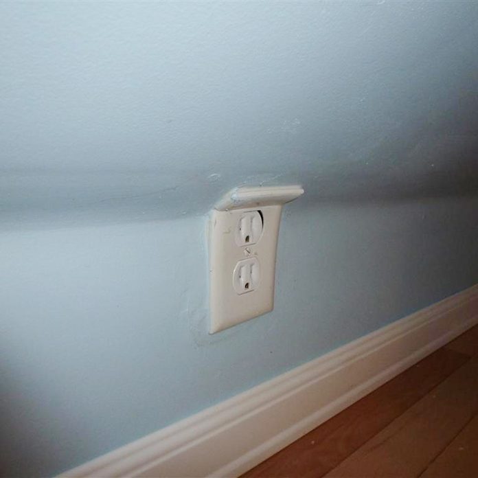 This might deserve a showing in the Museum of Modern Art for how well the outlet cover bent and hasn’t broken. It pays to put some thought into electrical box placement to avoid this stuff from happening. It reminds us of a fan we once saw with similar artistic qualities.