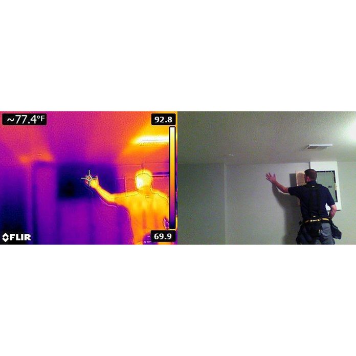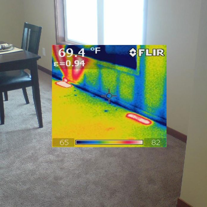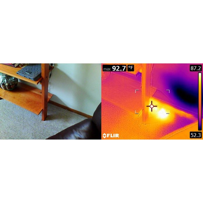 These heat sensor photos can reveal a lot like this one that shows a floor register that has been carpeted over. Seems like quick fix but how do you forget about the register when you re-carpet?