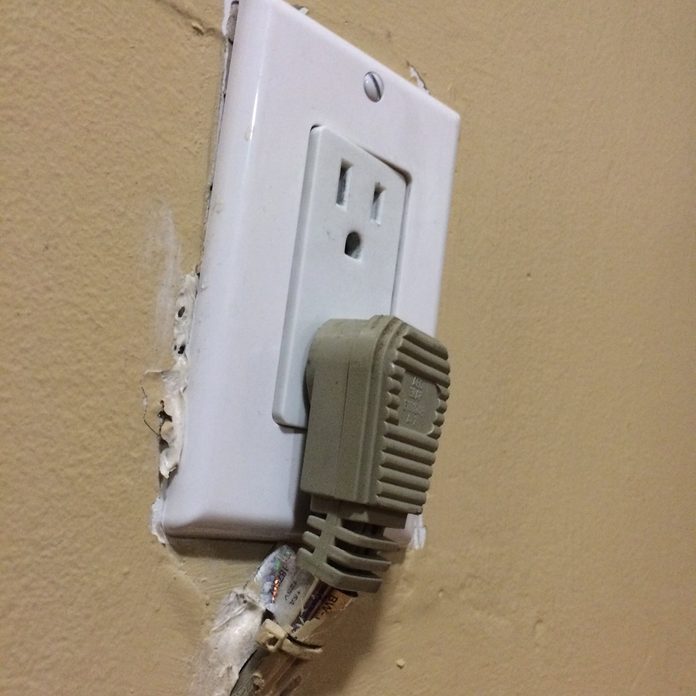 Someone is tempting fate with this light under a cabinet. It plugs right into an outlet, but it looks like it could be prone to breaking by bumping into it and there’s a serious issue with the amount of heat it’s giving off. There’s not enough clearance for the light be situated there. this guy should know that inexpensive LED low-voltage kits are available at every home center. We show you how to find the right LED lights.