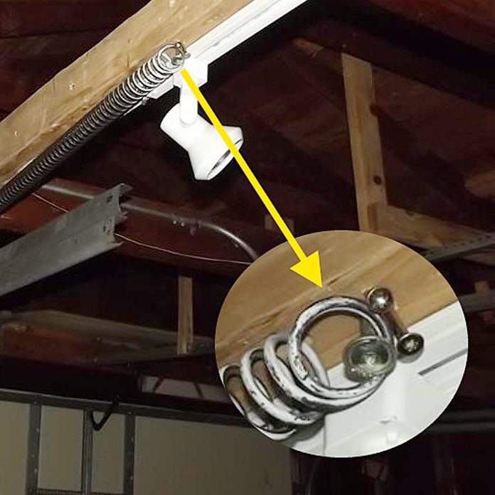 Garage door springs carry a tremendous amount of tension and having one supported by a screw poses serious danger.