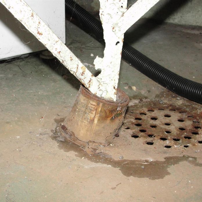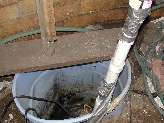 A half-hearted hack can turn into a big problem later like this garbage can sump pump. The absence of a lid means a host of things can fall in there and clog the pump, thus defeating the entire purpose of the sump pump and sump pit.