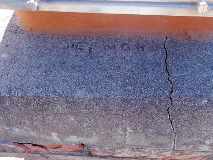 It’s not quite the Hollywood Walk of Fame but somebody left an impression on the concrete garage floor that will be there until someone decides to fix it. Maybe the next concrete project can be something where people won’t walk through like a beautiful fountain.