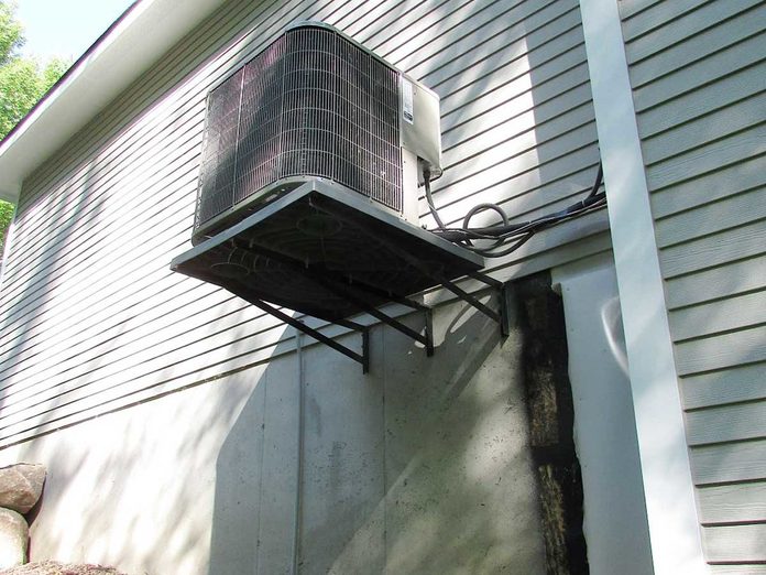 Somebody booted this deck project, but then again it should’ve probably never got started. The door to the deck is low off the ground and with the air conditioner near it, it’s impossible to create a deck with enough clearance for the AC unit and not need stairs from the door. Just take the whole thing down. Generate some deck ideas after looking at these inspiring deck designs.