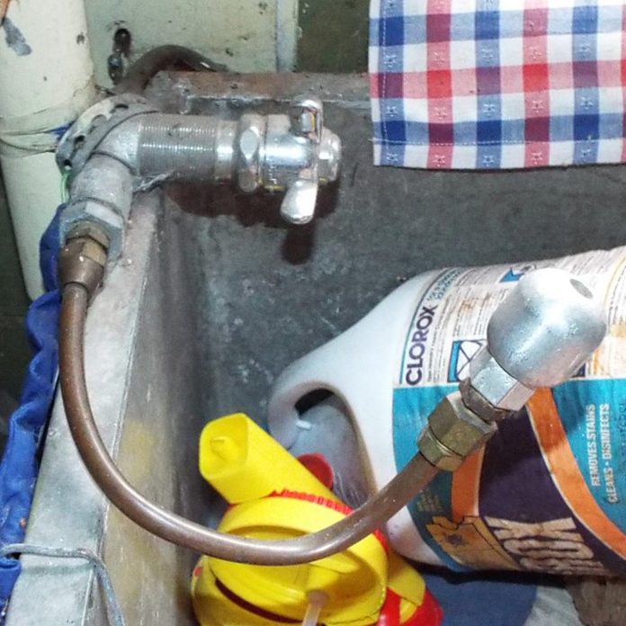Looks like someone gets thirsty in the laundry room and decided to add a drinking fountain to quench their thirst. Must not have wanted to keep a cup around. Wonder if they serve milkshakes upstairs?