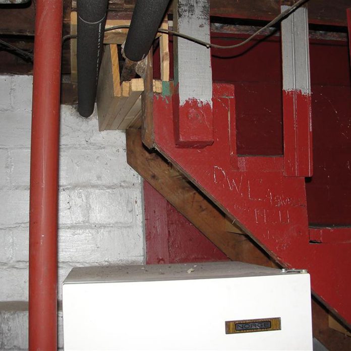 We’ve seen old coffee cans used for a number of things but even this is a new one. It’s attached to a combustion air duct that provides combustion air for an older furnace. Guess the coffee can is to keep critters out of the house.  Set aside an old coffee can for hardware storage instead.