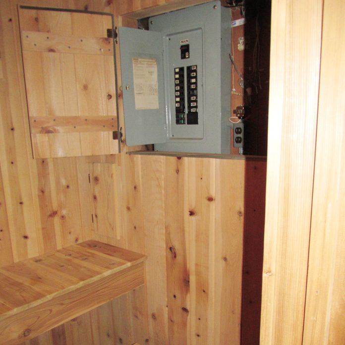 Out of all the places in a home to put a sauna, this one somehow ended up next to the breaker box. Do NOT build your sauna around your service panel. Can you imagine what the moisture will do to the inside of this thing powering your entire house???