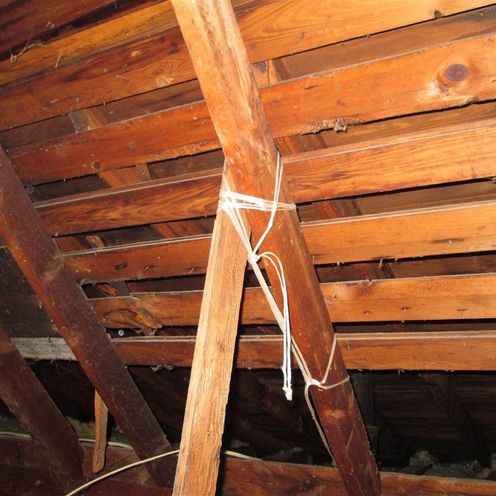 Even a scoutmaster who know how to tie all the knots in the world wouldn’t approve of this rafter fix.