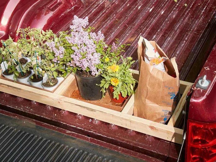 Pickup truck beds are ideal for bulky items, but what about the smaller things that roll all over the place? Here’s an answer for the question of the things you do with things you don’t want to move in a pickup truck bed: make a super simple caddy that you can fasten with deck screws.