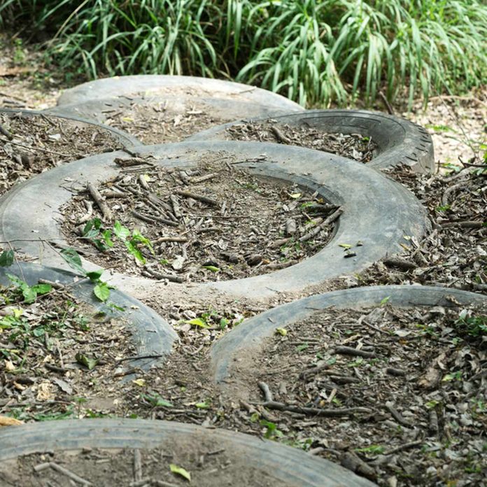 Kids love to climb on playground equipment and old tires are often used for climbers like this.