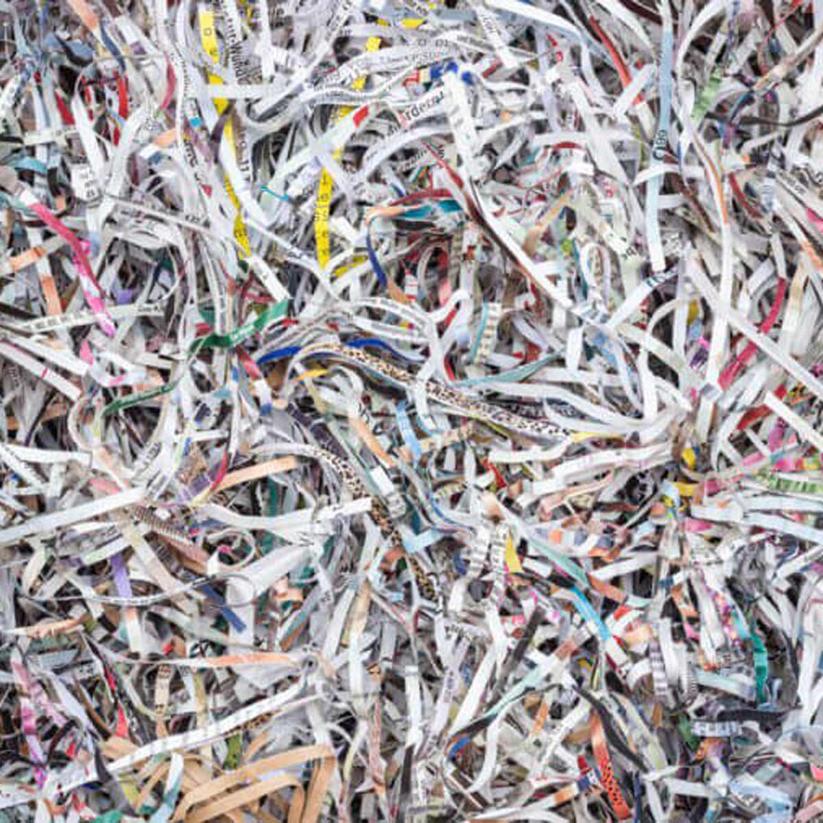 Vacuuming up heaps of shredded paper is just as bad as heaps of hair, leading to a clogged machine and a screwed-up motor. A broom is the best solution to this mess, unless the shredded paper is on a carpet, in which case you may just need to use your hands. Good luck.