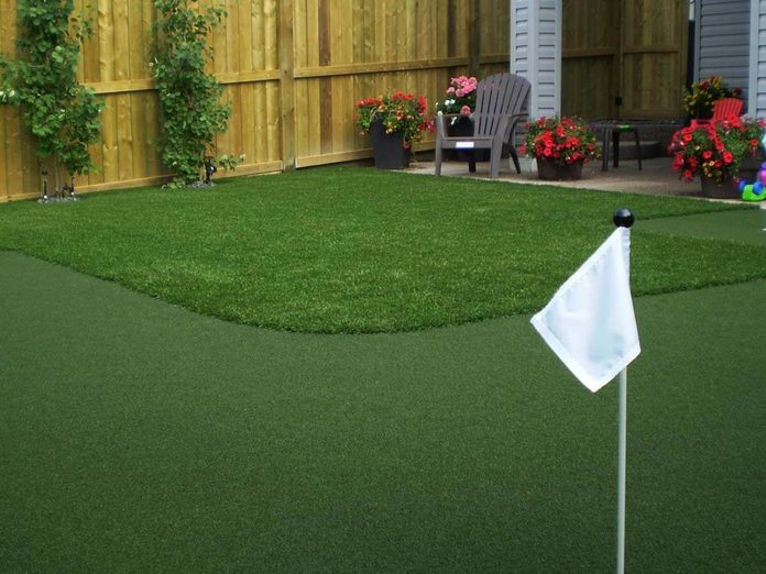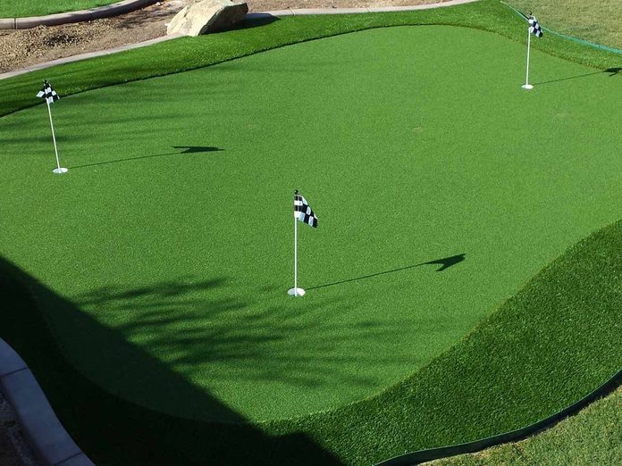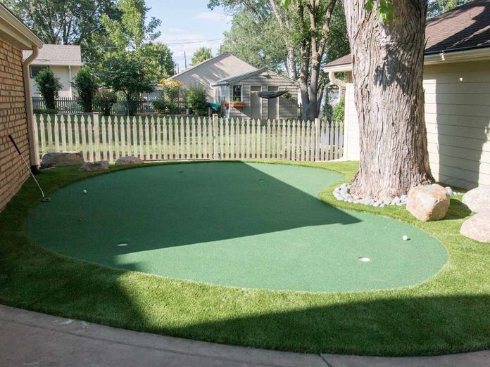 Those that decide to go the DIY route with a backyard putting green will have to plan ahead because some of the turf will need to be soaked to shrink and cut to the right dimensions.
