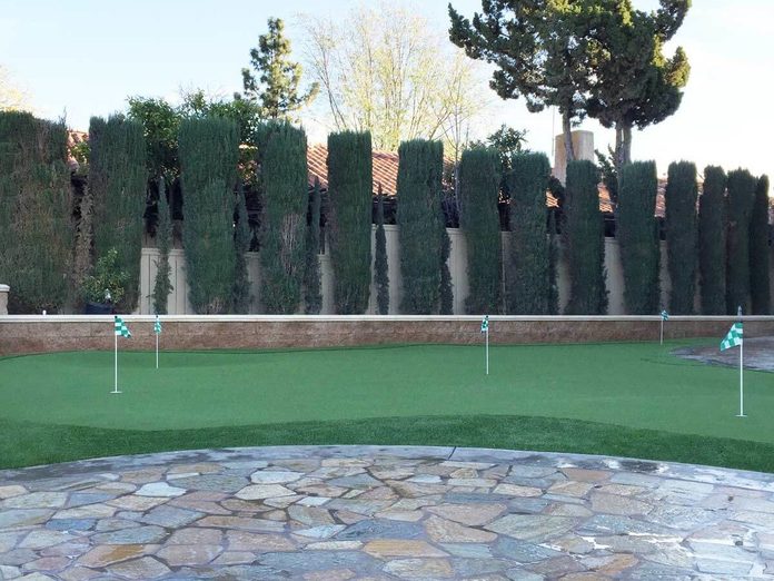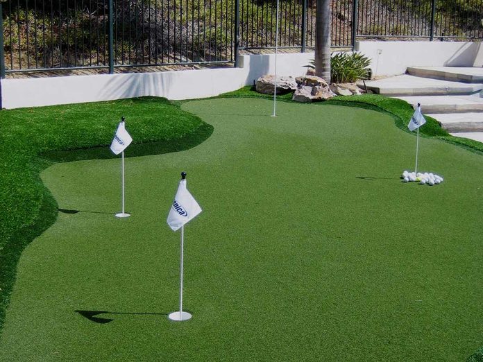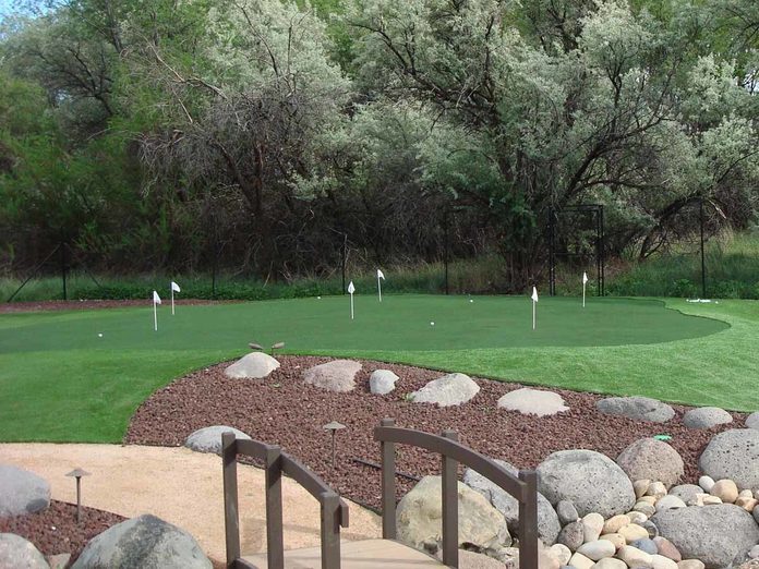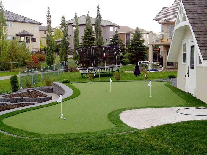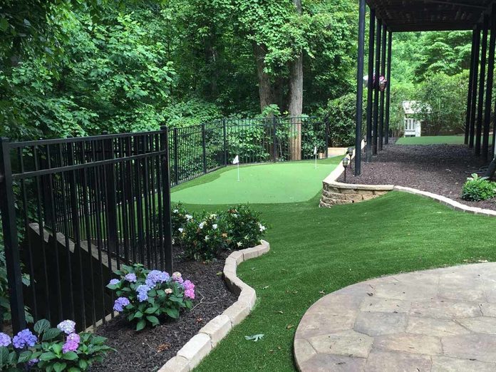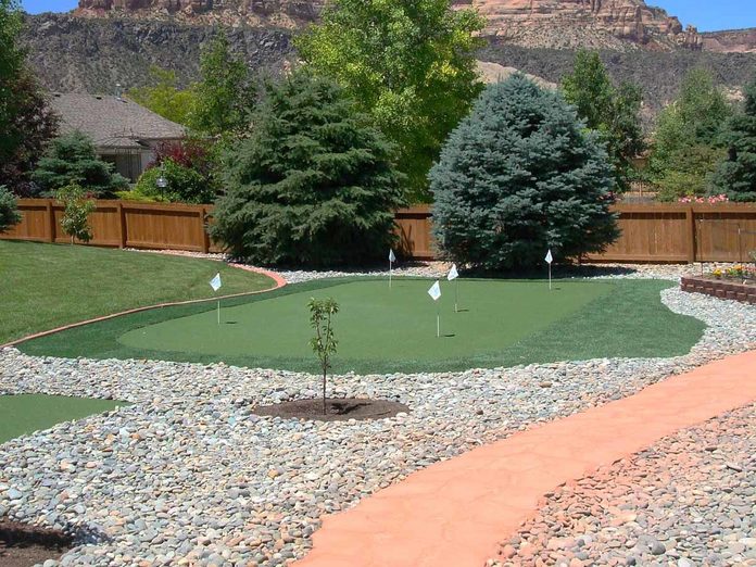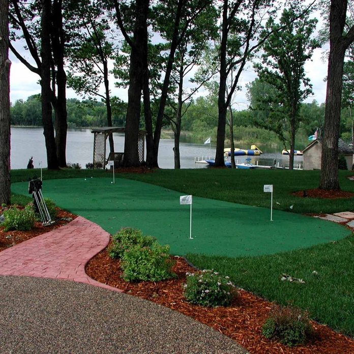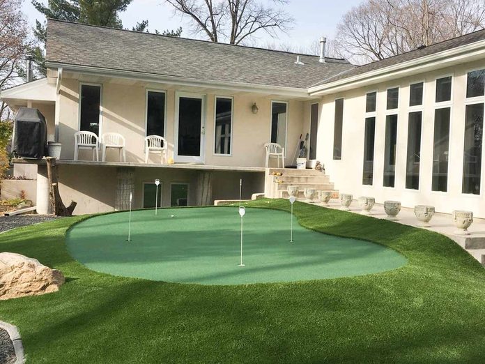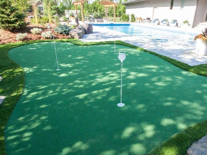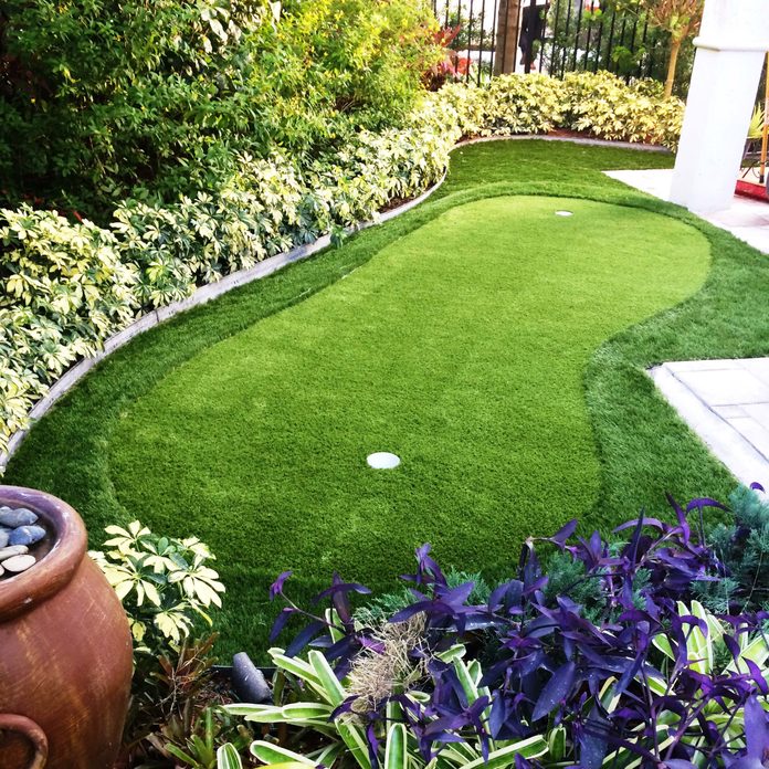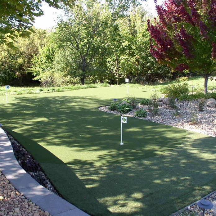 Depending on where your local track is located, getting some time on the putting and chipping area might be tough to come by. A backyard putting green makes it easy to relax after work … at home.