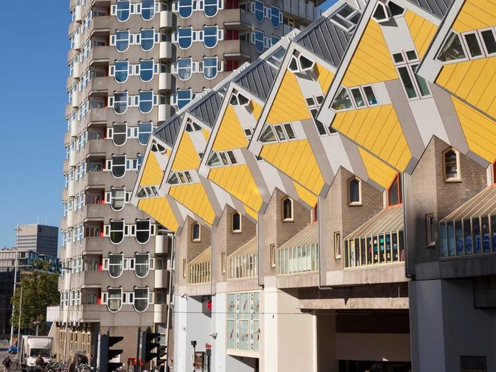Architect Piet Blom designed a series of cube houses in the Netherlands set at an angle to optimize the space inside. These are located in Rotterdam and there are others in Helmond. The houses are around 1,000-square-feet and are meant to resemble an abstract forest. The homes are three stories tall and have an open kitchen and living room on the first floor, a bathroom and two bedrooms on the second floor and some have rooftop gardens. Get your garden going with these amazing tips.