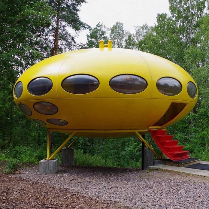 The Futuro House, designed by Matti Suuronen, a Finnish architect, back in late 1960s and early 1970s. Fewer than 100 are thought to have been built and there are 80 remaining units. Seventeen Futuros have been demolished but those that remain span the globe. They were made with fiberglass-reinforced polyester plastic and designed as a ski chalet. It stood 14 feet tall and had a diameter of 26 feet. Eight people could fit inside. The Futuro house was thought to be able to get people into remote locations, kind of like these 50 extremely remote castles.