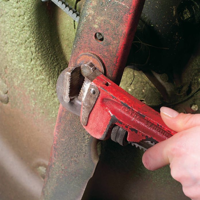 Loosen bolts with worn, rounded heads with a pipe wrench! The pipe wrench jaws dig in and grab the head so you can remove the bolt. Check out these other clever new uses for your tools.