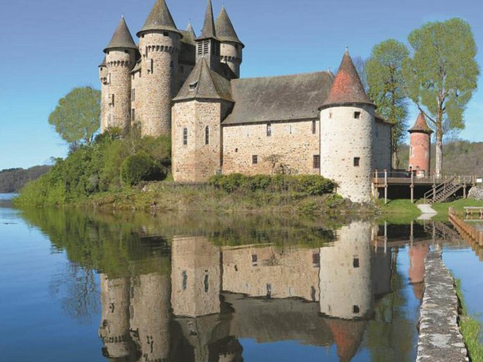 Located in south central France, the Chateau De Val dates to the 15th century and features six towers on Lake Bort.