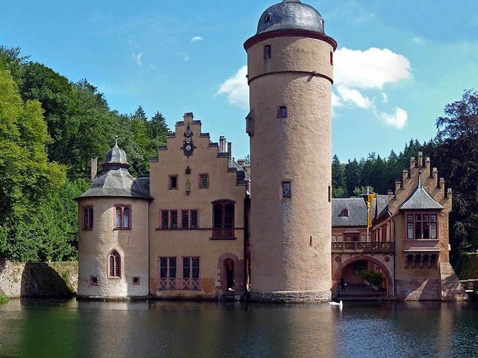 Mespelbrunn Castle in Germany was completed in the 16th century as a Renaissance-style castle in a remote location. The Ingelheim family still owns the castle and continues to reside in a portion of it.