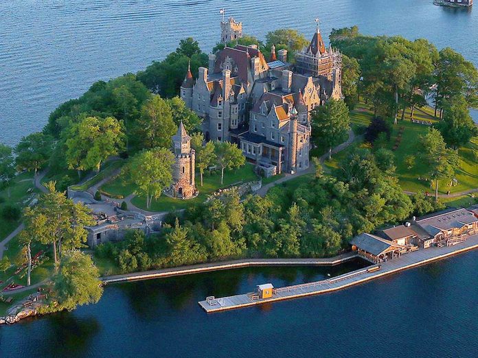 George C. Boldt, who owned the Waldorf Astoria in New York, wanted to build a rhineland style castle in Alexandria Bay in upstate New York. What developed was a 120 room, six story castle complete with a drawbridge, tunnels and an Italian garden. Boldt’s wife died suddenly in 1904 and he ordered work to cease. It stood untouched for 73 years until Thousand Islands Bridge Authority landed the property.