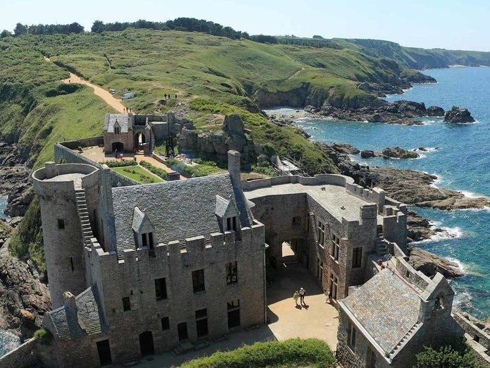 Built in the 13th century in northeast Brittany, Fort La Latte contains a dungeon, drawbridge on top of a cliff. It also has a melting furnace for cannon falls.
