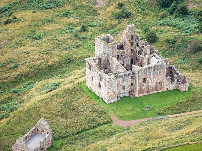 Crichton Castle dates to the 14th century in Scotland and features an Italian-influence facade courtyard.