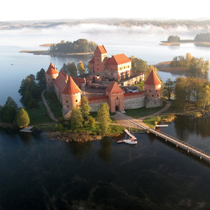 The Trakai Island Castle in Lithuania is a stone building that has its beginning in the 14th century. It was built in several stages and includes moving gates to separate different parts. Several restoration projects have taken place on the castle and now it’s a major tourist destination.