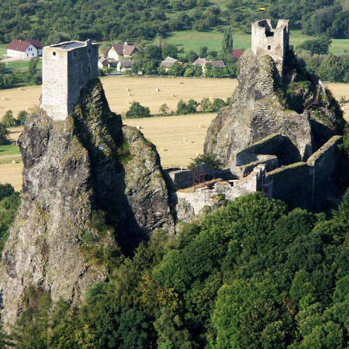 Some castles are timeless like Trosky Castle in northwestern Czech Republic. The castle sits on two basalt volcanic plugs, which are created when magma hardens within a vent on an active volcano. The castle was built in the second half of the 14th century and is now in ruins after it burned down during the Thirty Years War in 1648.