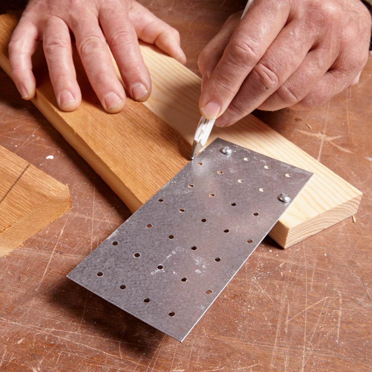 Not long ago, I needed to make some angled wood parts to build a new soffit on my garage. I didn’t have the customary tool for the job, but I had some steel joining plates. I screwed through one of the holes in the plate, set my angle, then added another screw to lock the angle. I could then use it as a template to mark all the pieces at the same angle and cut them with my circular saw. — Ryan Bartsch
