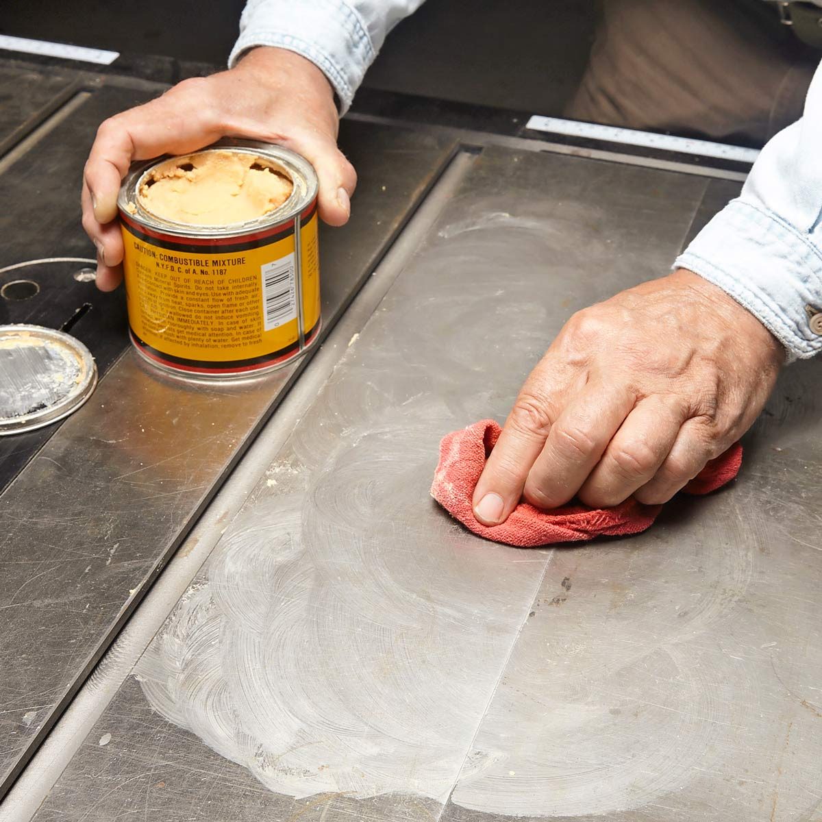 I find the best way to protect my cast-iron table saw top is to occasionally rub on a coat of paste wax. This gives me a nice, slick top for easier material feeding, and if I drip glue on the surface, it won’t stick. It also helps prevent surface rust when the air is humid. — Jack Linden.