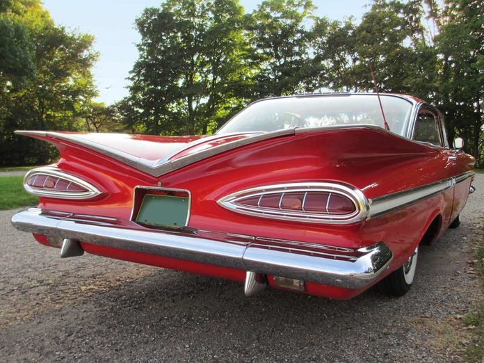 I’ve had several classic cars since those childhood days, but this one is my favorite. I pursued this red beauty for almost three years before the man who’d owned it for 19 years decided to sell it when he moved into a condo. This is a beautiful, sleek automobile, with styling all its own. It comes from an era when there was a passion for design, a special point in time when the outrageous tail fins of the 1950s met the Space Age, with its rocket and sputnik design cues. — Gary Pietraniec