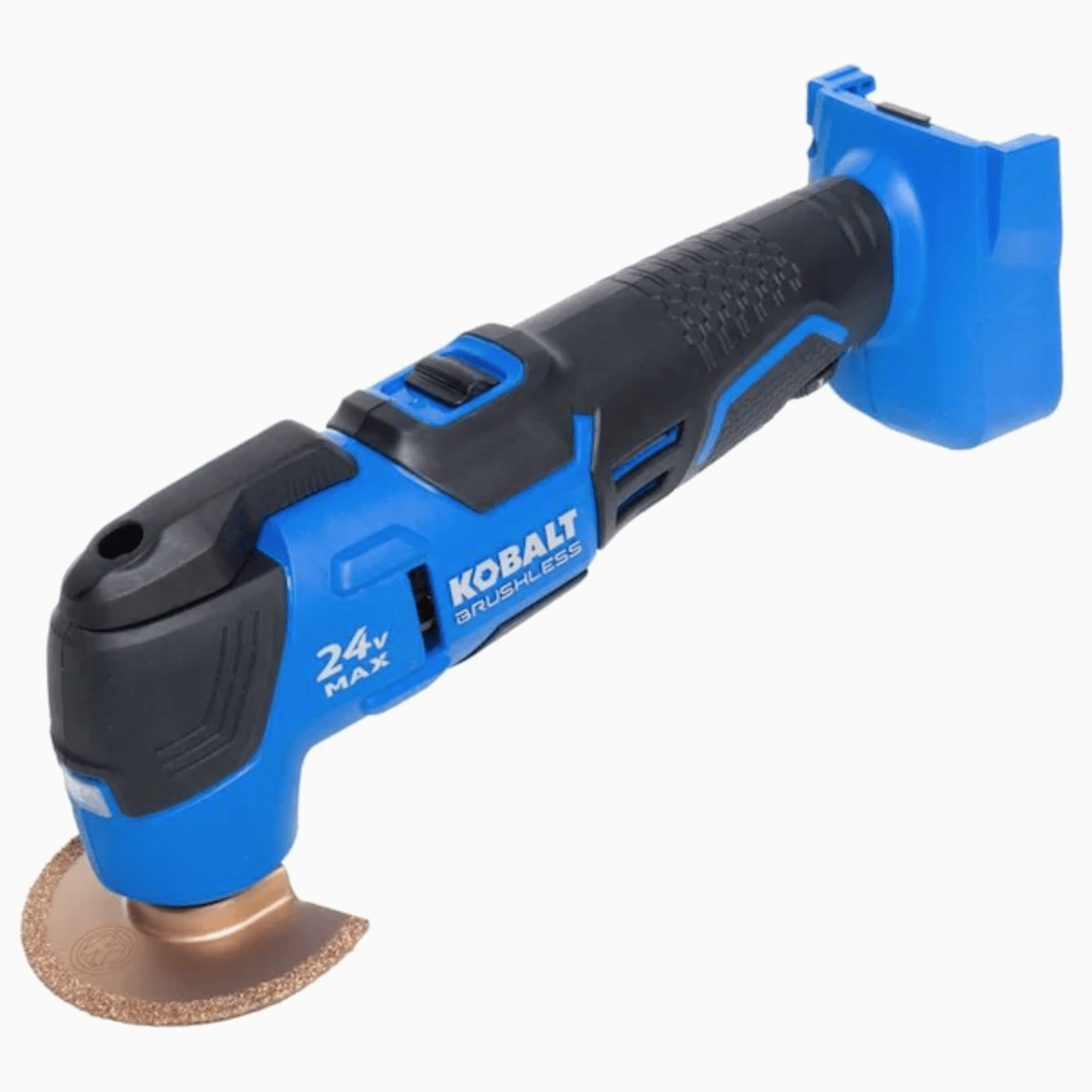 The 18-piece cordless Kobalt Oscillating Tool Kit is a must for anyone tackling a remodeling project. Easily cutting out pieces of trim, removing tile and cutting into walls—this oscillating tool does it all.