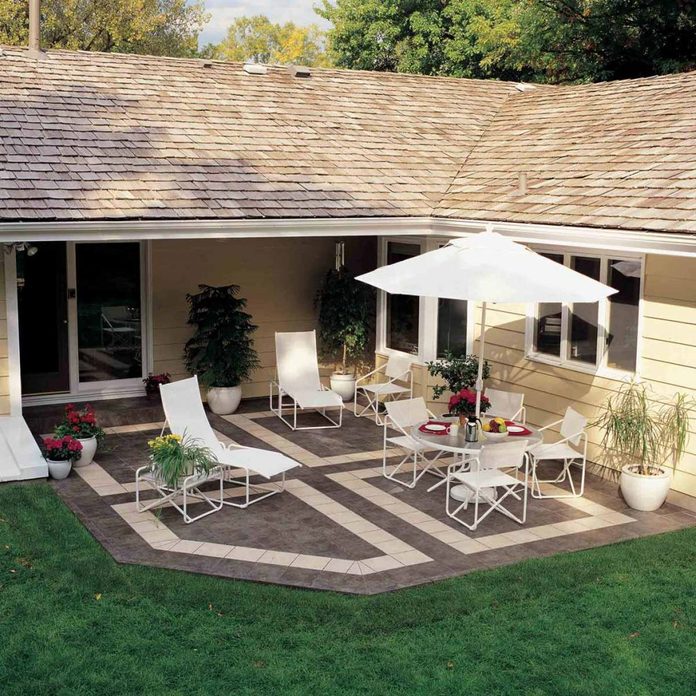Decorative brick or stone is DIY-friendly and results in a classic, tidy-looking patio paver. If you already have a concrete patio, you can cover it with pavers to get a different look.