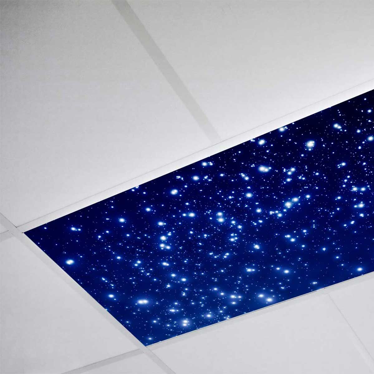 Keep things simple with monochromatic, faux-skylight fluorescent light cover film. This film goes over your existing plastic diffuser to add a hint of calming blue and to diffuse harsh, fluorescent glare. This product is popular for medical offices, waiting rooms and classrooms where the softened blue hue is comforting.