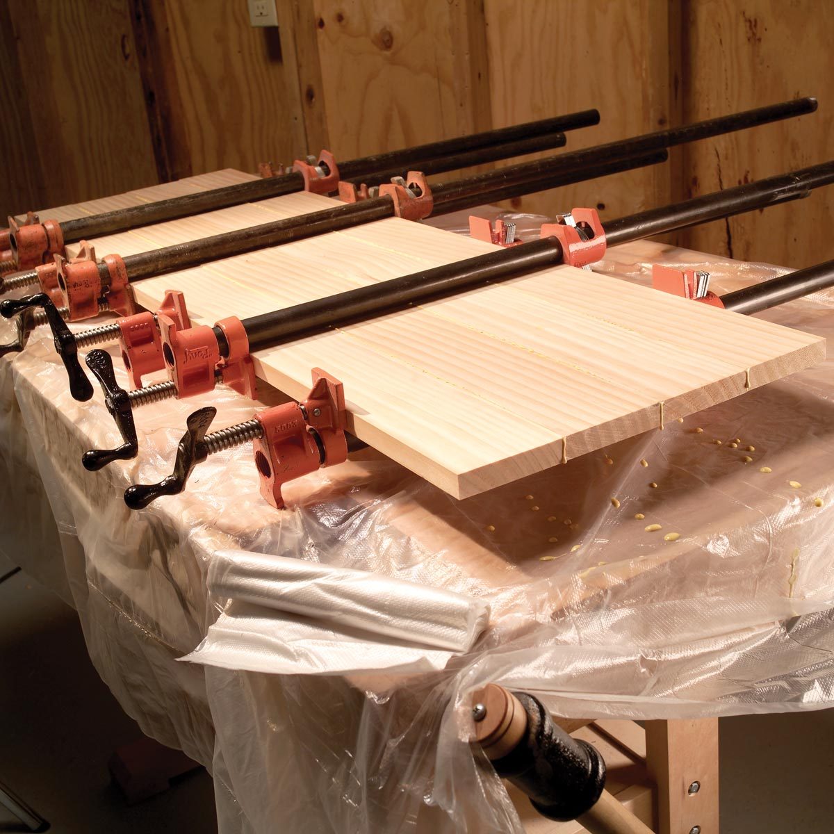 Tired of scraping dried glue from your workbench and clamps? Shop teacher John Nelson’s no-mess technique also ensures a flat finished surface when you’re edge gluing boards.