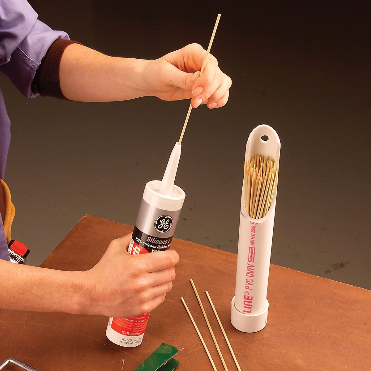 Use a Worm Blower to inject glue when repairing splits and cracks in projects. The air-powered needle tip shoots glue deep into the crack for a long-lasting repair. Just be sure to clean the glue from the syringe tip by squirting hot water through it when you’re finished.